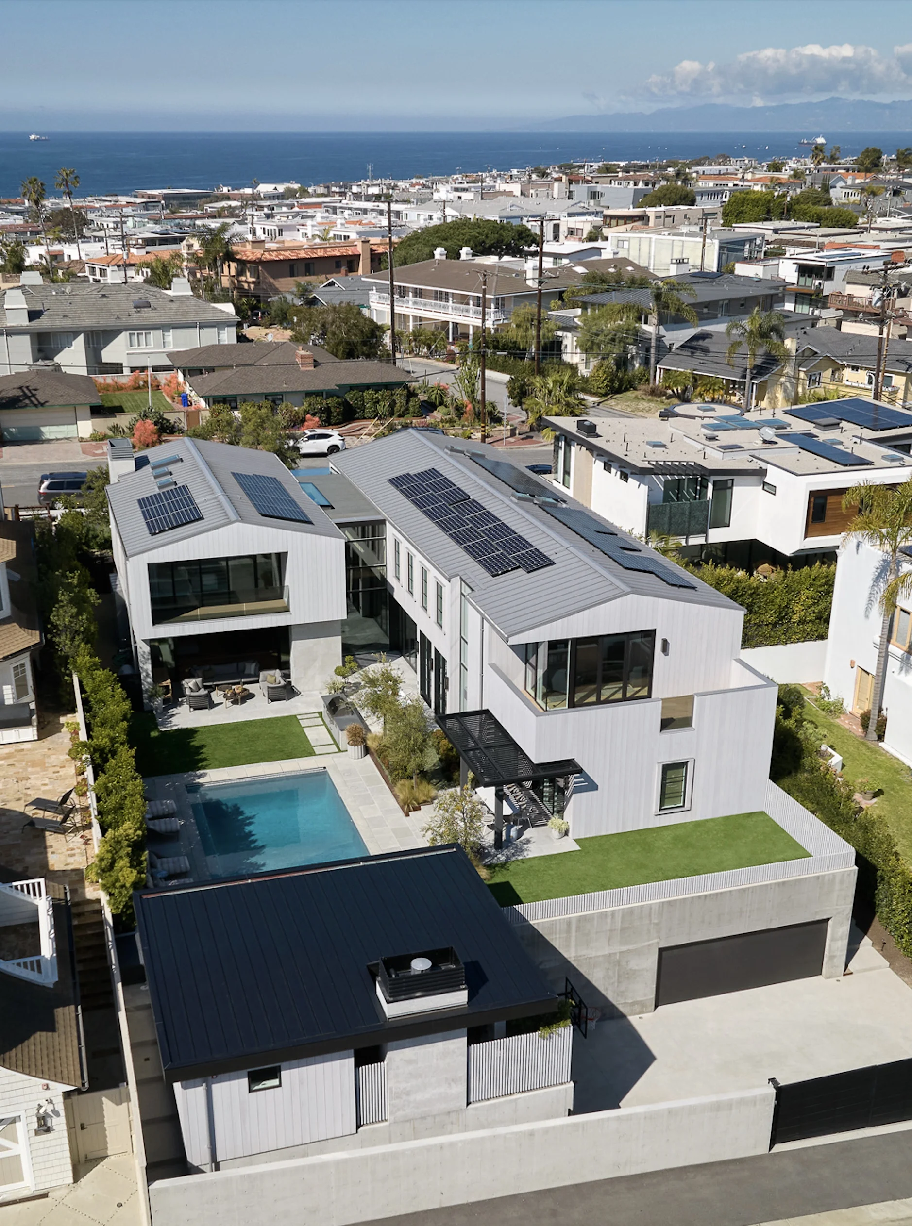 In appreciation of the mild Southern California climate, we carved out places under cover to enjoy ocean breezes and family gatherings